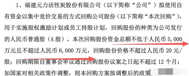 活性炭龙头,拟回购5000万到6000万,价格不超过20块。现价多少?15块左右,离回购上限还有30%空间。公司做木质活性炭,食品、医药、水处理都要用,细分领域市占率第一。去年业绩增长20%,估值才20倍PE,大股东觉得便宜了。
