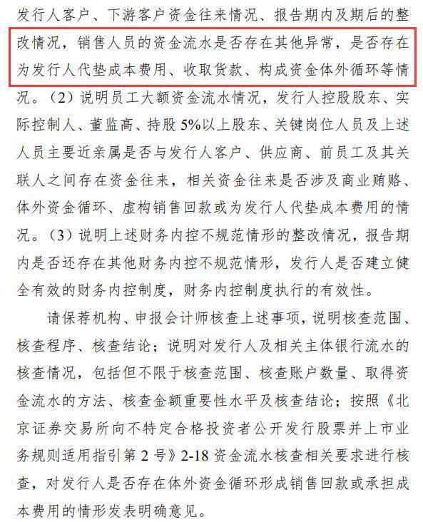 2025年1月14日, 关于珠海市杰理科技股份有限公司公开发行股票并在北交所上市申请文件的审核问询函显示,根据申请文件,(1)发行人曾于2015年、2016年存在使用个人卡收支货款的情形,各期收入货款规模约7,000万元。截至报告期期初(2021年1月),收支货款结余金额327.93万元尚未归还公司账户,2021年3月,实际控制人将上述体外收支结余资金及利息全额归还给发行人。(2)报告期内,发行人销售人员存在利用自身信息优势,通过在发行人客户及下游客户之间“倒货”获利,在客户之间进行调货、买卖芯片,从中赚取买卖芯片的差价或介绍业务的佣金,最终呈现出发行人的销售人员与发行人的客户、下游客户存在资金往来情况。发行人说明此事项“均由销售人员个人决策和实施,与发行人业务无关”。(3)发行人部分员工存在大额资金流水往来。